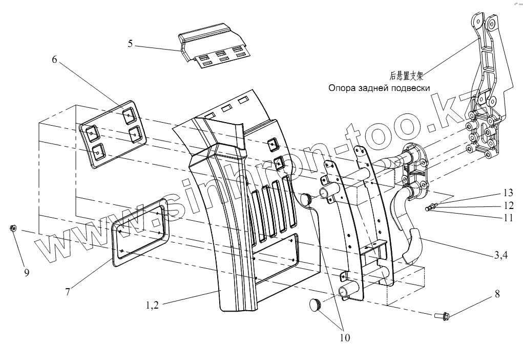 Каталог запасных частей к технике: FAW CA-4180 (P66K22A). Задний брызговик