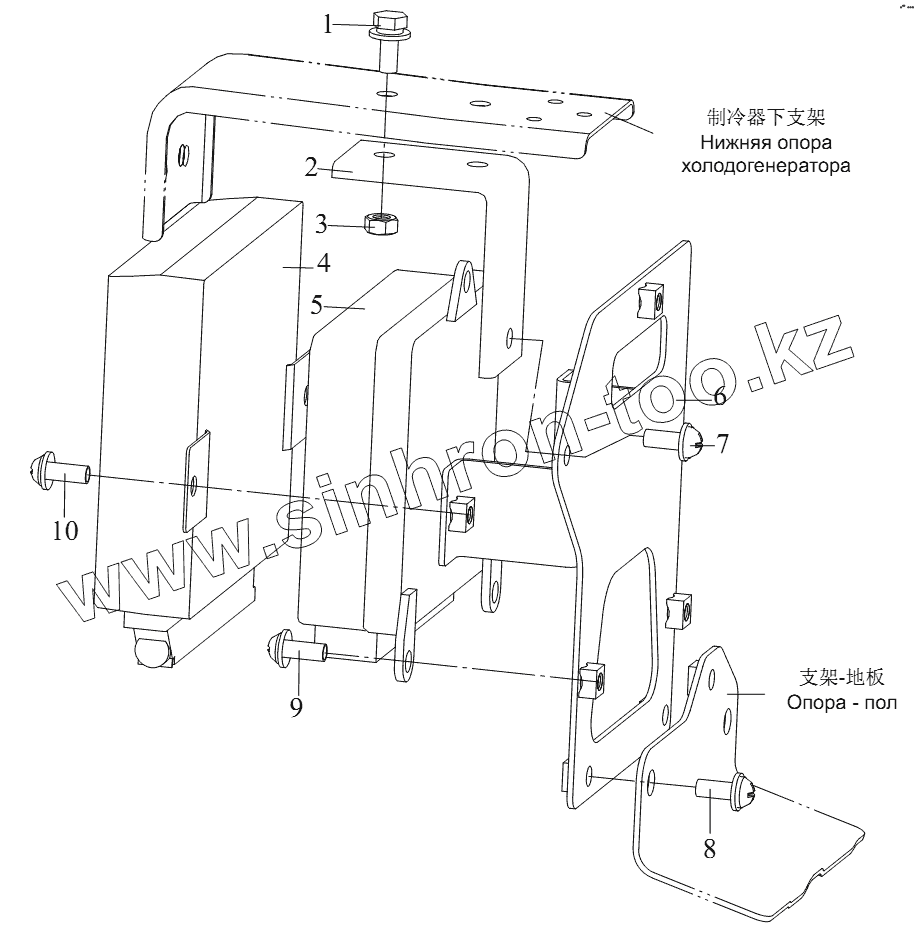 Ресивер со стойкой стояночного и переднего тормозов в сборе
