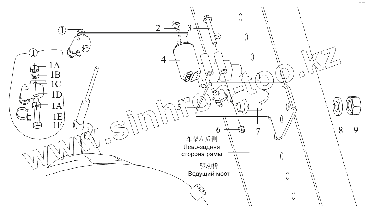 Каталог запасных частей к технике: FAW CA-4180 (P66K2A). Датчик высоты воздушной подвески
