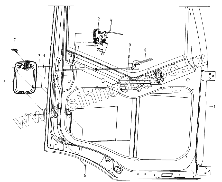 Каталог запасных частей к технике: FAW CA-4180 (P66K2A). Механизм электрического замка двери