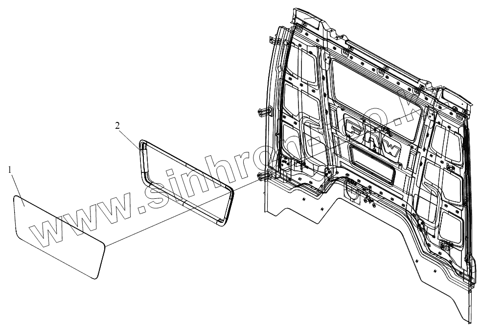 Каталог запасных частей к технике: FAW CA-4180 (P66K2A). Стекло заднего окна