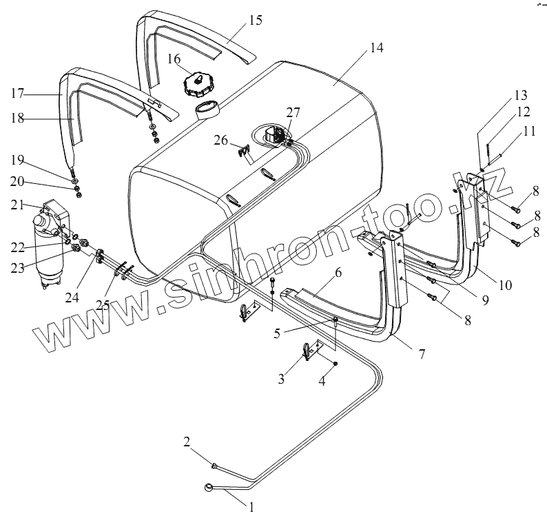 Каталог запасных частей к технике: FAW CA-4180 (P66K2A). Топливный бак и топливная магистраль