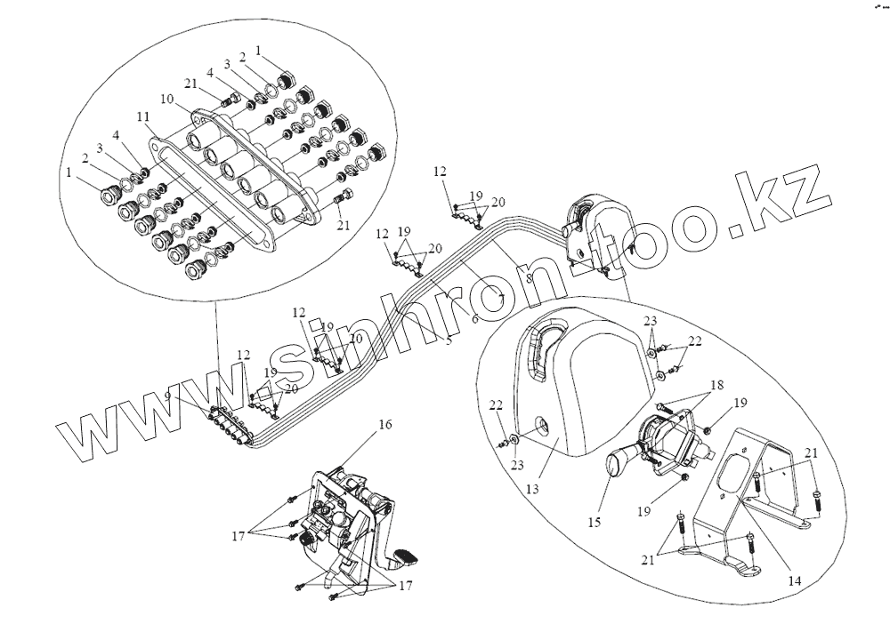 Каталог запасных частей к технике: FAW CA-4180 (P66K2A). Тормозная магистраль (часть кабины)