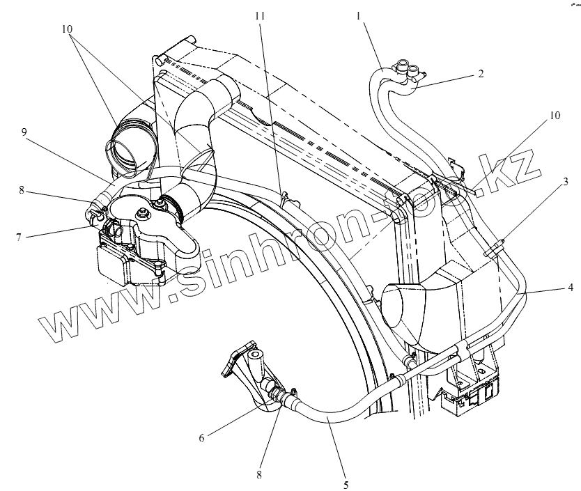 Каталог запасных частей к технике: FAW CA-4180 (P66K2A). Трубопровод отопления