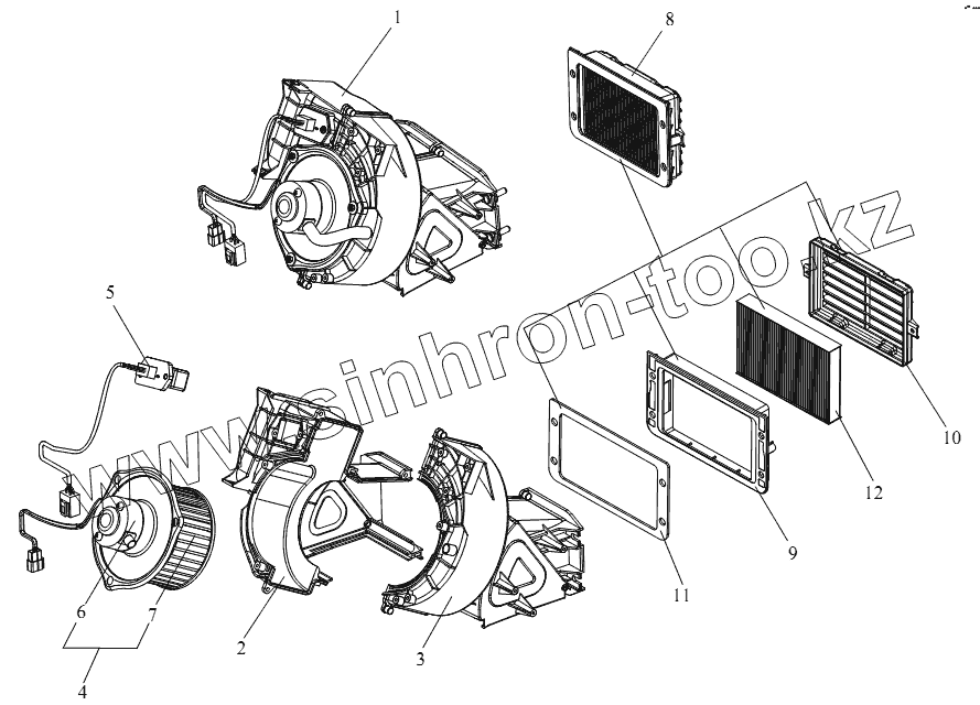 Каталог запасных частей к технике: FAW CA-4180 (P66K2A). Ветродвигатель, фильтр наружного воздуха