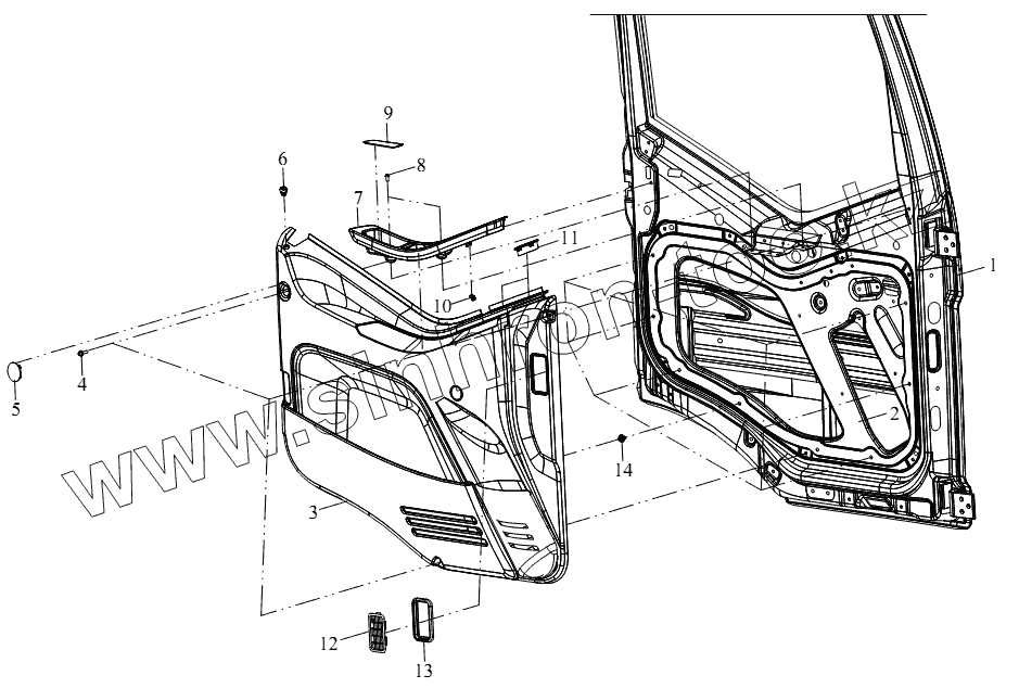 Каталог запасных частей к технике: FAW CA-4180 (P66K2A). Внутренняя декоративная пластина двери