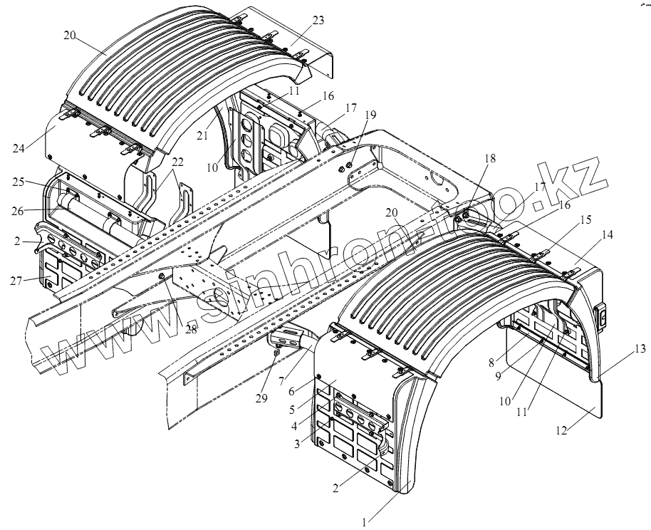 Каталог запасных частей к технике: FAW CA-4180 (P66K2A). Заднее крыло