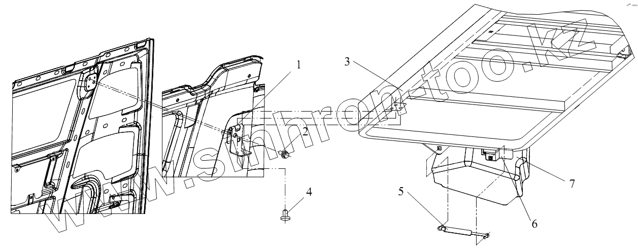 Каталог запасных частей к технике: FAW CA-4250 (P66K22T1A1EX). Блок верхнего спального места (II)