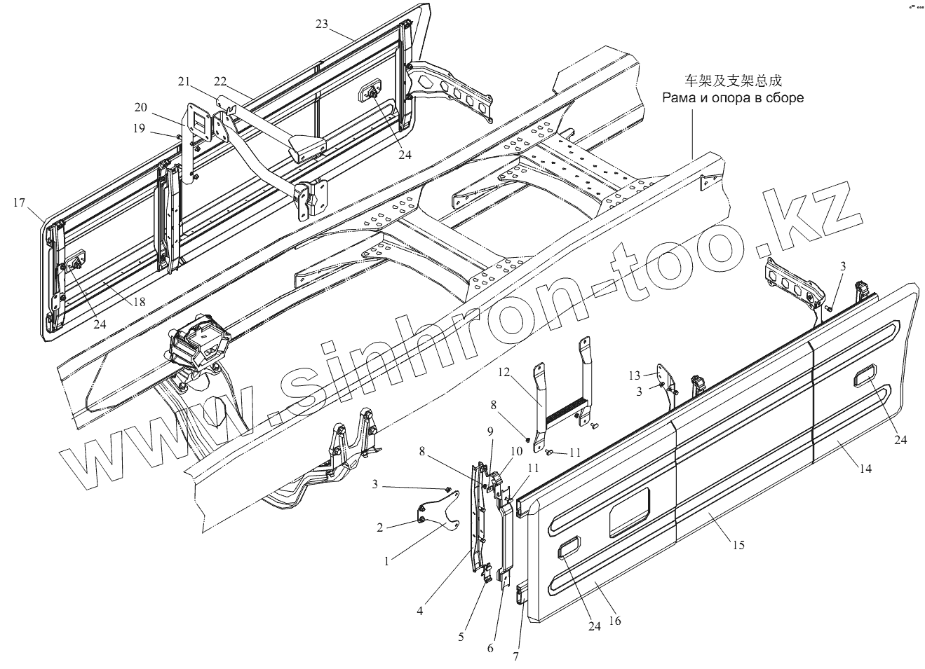 Каталог запасных частей к технике: FAW CA-4250 (P66K22T1A1EX). Боковое ограждение и боковой опознавательный огонь