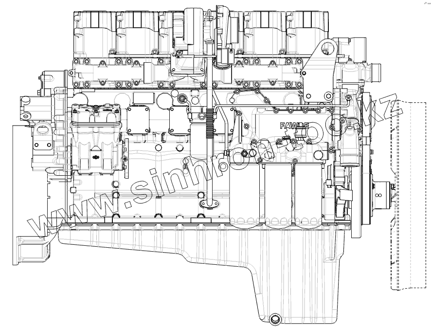 Каталог запасных частей к технике: FAW CA-4250 (P66K22T1A1EX). Двигатель (вид справа)