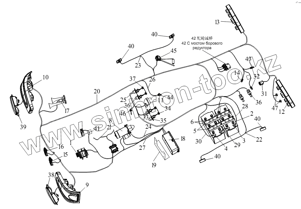 Каталог запасных частей к технике: FAW CA-4250 (P66K22T1A1EX). Электрооборудование шасси