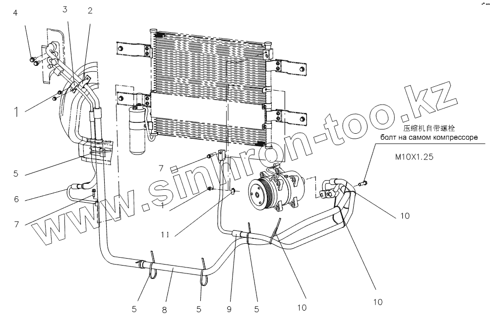 Гибкий рукав низкого давления в сборе - от холодогенератора до компрессора