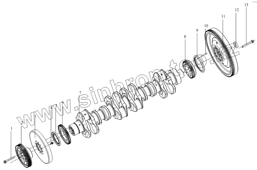 Каталог запасных частей к технике: FAW CA-4250 (P66K22T1A1EX). Коленчатый вал, шкив и маховик