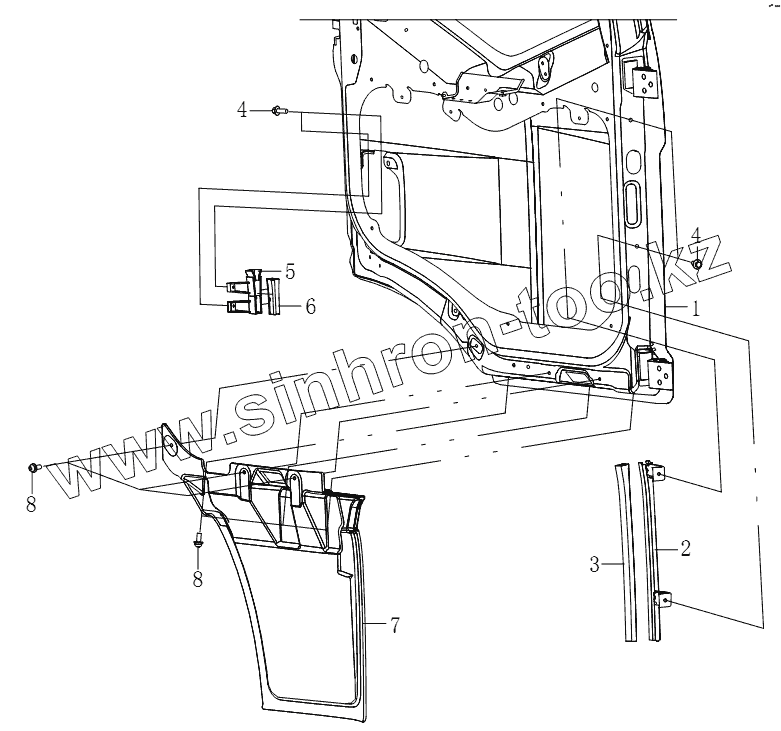 Каталог запасных частей к технике: FAW CA-4250 (P66K22T1A1EX). Нижняя декоративная пластина двери