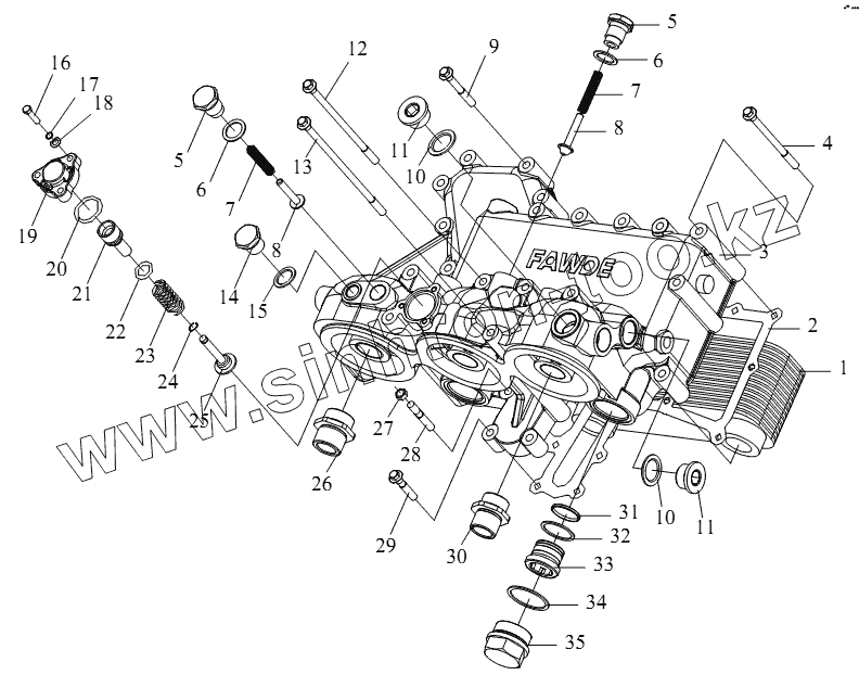 Каталог запасных частей к технике: FAW CA-4250 (P66K22T1A1EX). Охладитель моторного масла