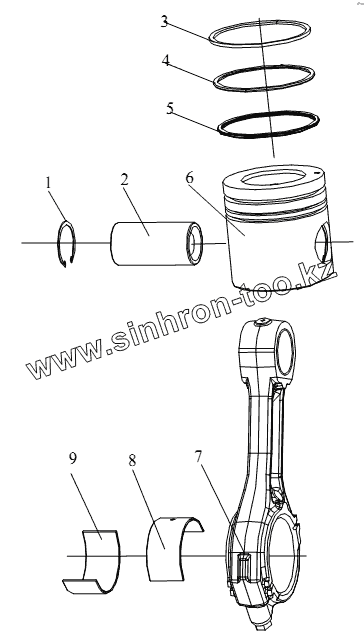Каталог запасных частей к технике: FAW CA-4250 (P66K22T1A1EX). Поршень, шатун