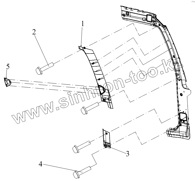 Внутренняя облицовка боковой обшивки и блок задней скобы (высокая крыша)