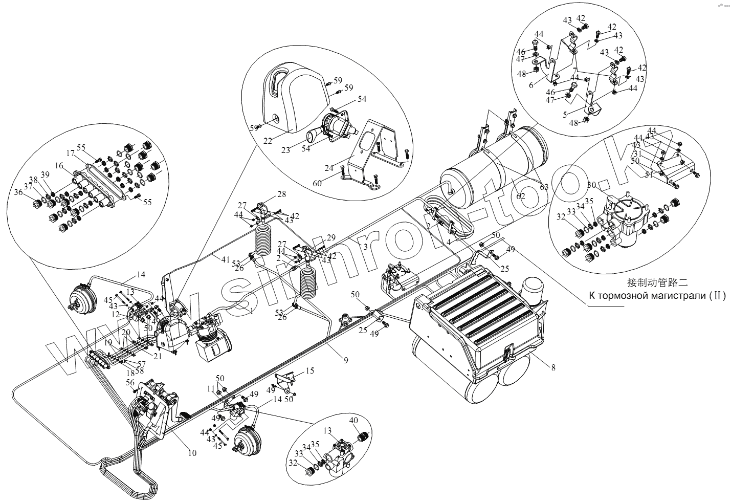 Каталог запасных частей к технике: FAW CA-4250 (P66K22T1A1EX). Тормозная магистраль (I)