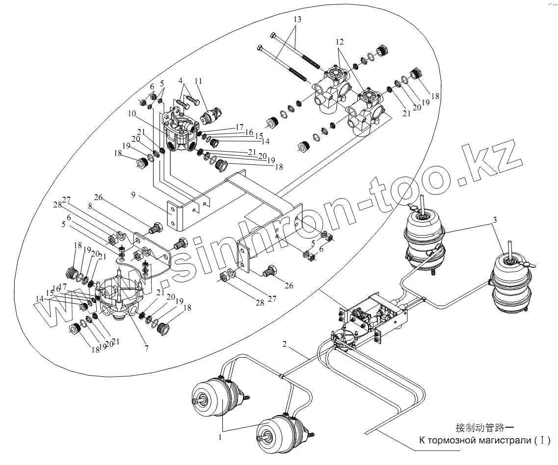 Каталог запасных частей к технике: FAW CA-4250 (P66K22T1A1EX). Тормозная магистраль (II)