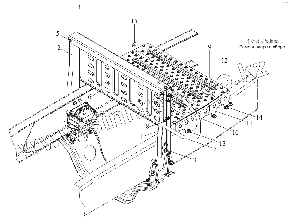 Каталог запасных частей к технике: FAW CA-4250 (P66K22T1A1EX). Вспомогательное устройство прицепа и рабочая площадка