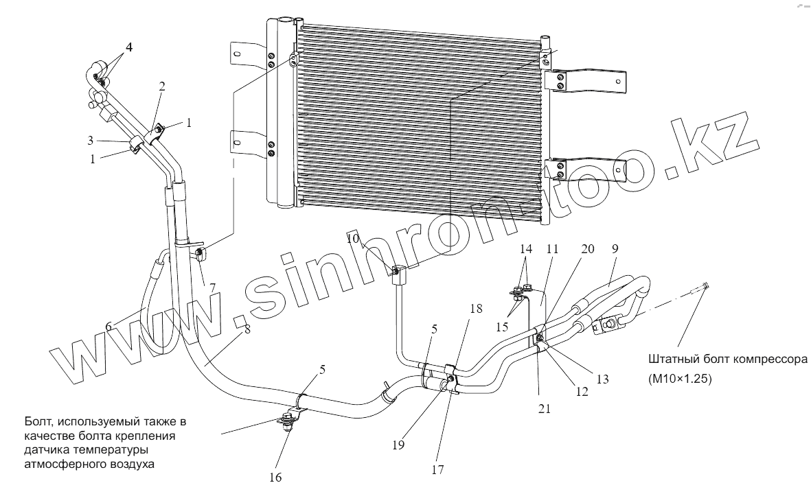Гибкий трубопровод высокого давления в сборе между конденсатором и охладителем