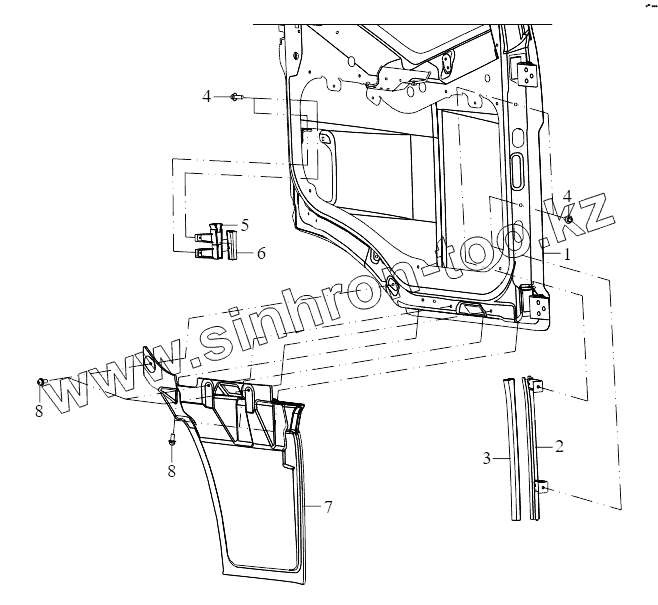 Каталог запасных частей к технике: FAW CA-4250 (P66K24T1E5). Нижняя декоративная панель двери
