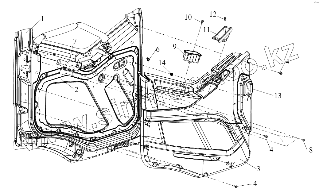 Каталог запасных частей к технике: FAW CA-4250 (P66K24T1E5). Обивка двери