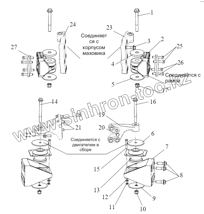 Каталог запасных частей к технике: FAW CA-4250 (P66K24T1E5). Подвеска двигателя