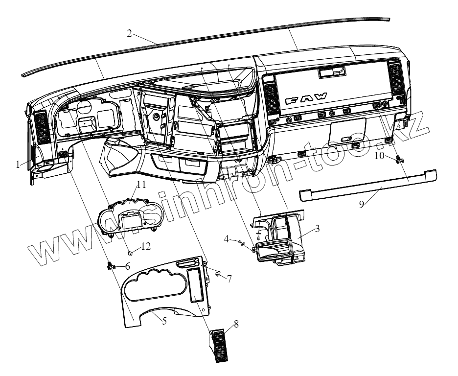 Каталог запасных частей к технике: FAW CA-4250 (P66K24T1E5). Приборная панель (III)
