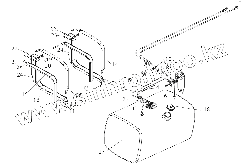 Каталог запасных частей к технике: FAW CA-4250 (P66K24T1E5). Топливный бак и топливопроводы