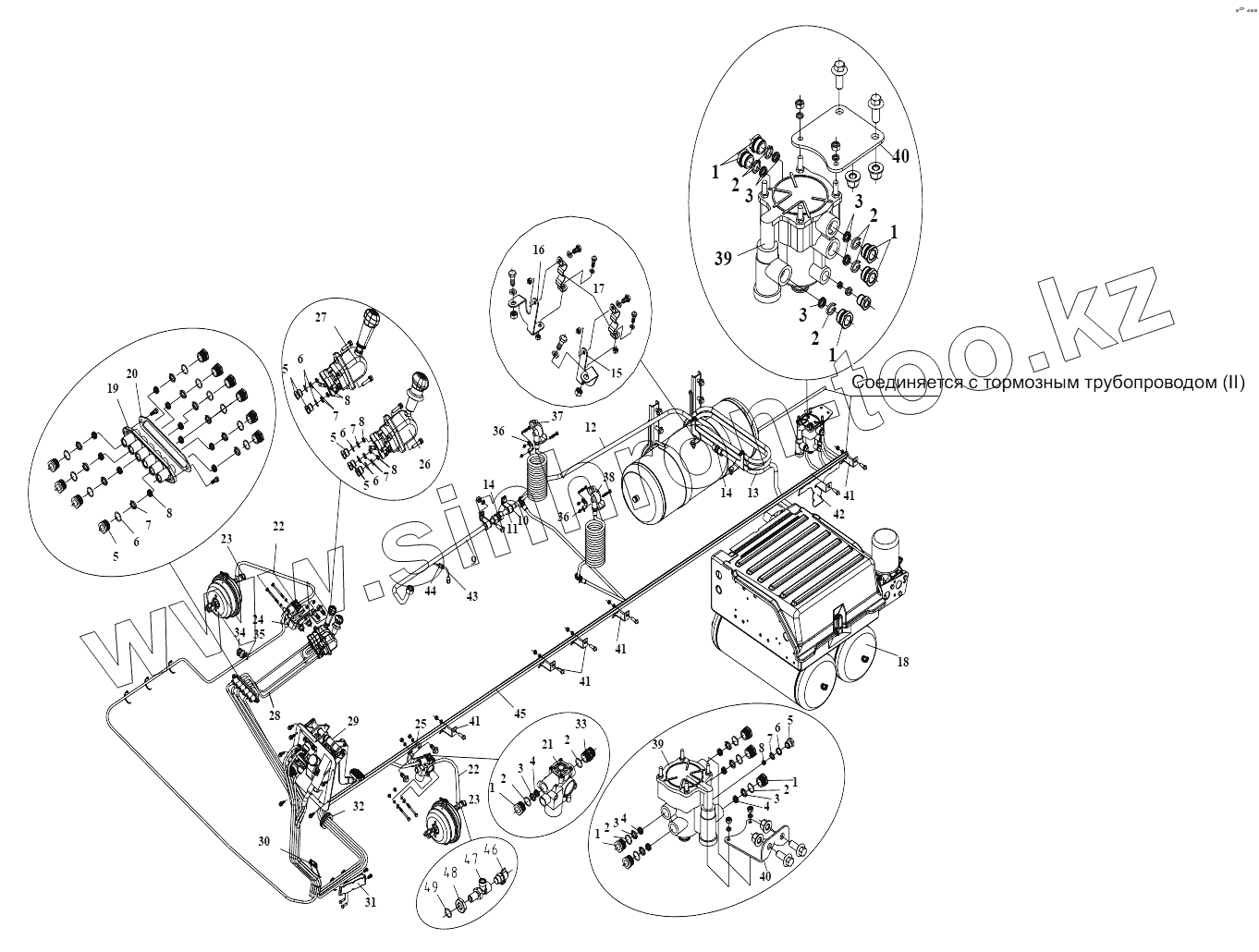 Каталог запасных частей к технике: FAW CA-4250 (P66K24T1E5). Тормозные трубопроводы (I)