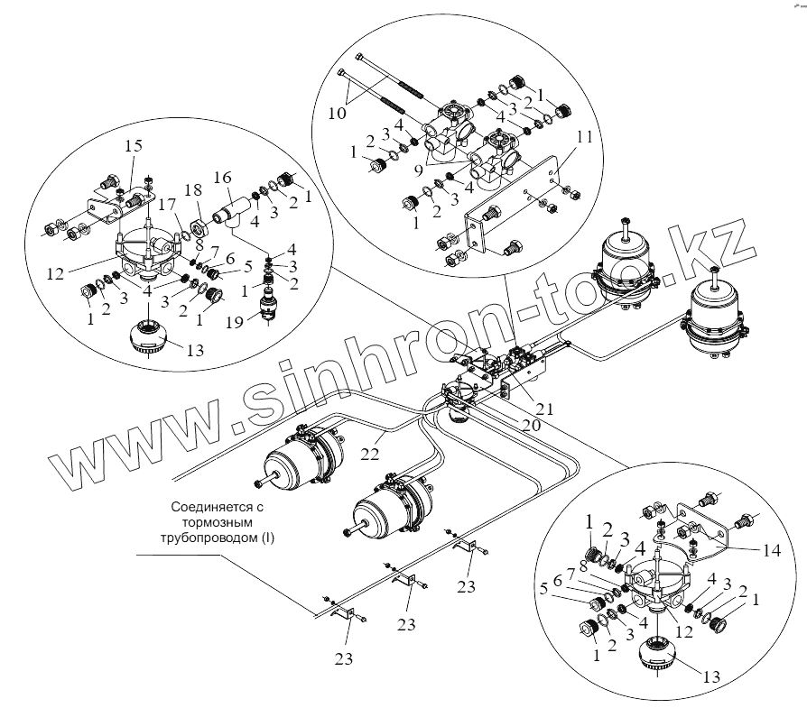 Каталог запасных частей к технике: FAW CA-4250 (P66K24T1E5). Тормозные трубопроводы (II)