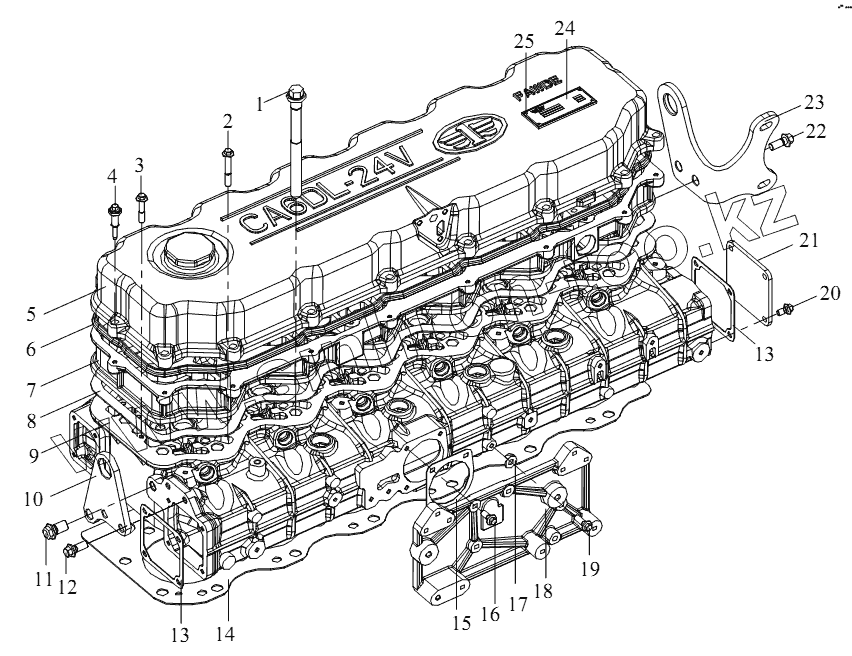 Каталог запасных частей к технике: FAW CA-4250 (P66K2T1A1EX). Блок крышки цилиндра