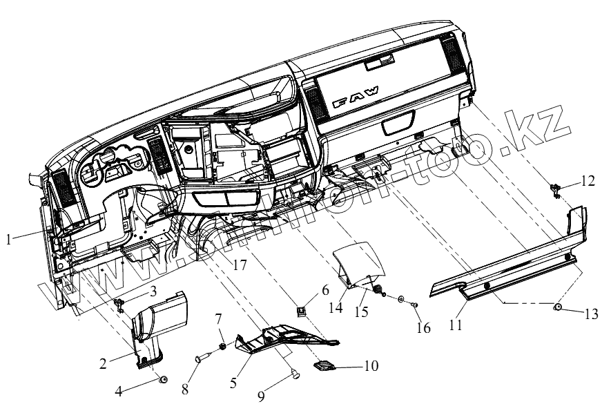 Каталог запасных частей к технике: FAW CA-4250 (P66K2T1A1EX). Блок приборной панели (VI)