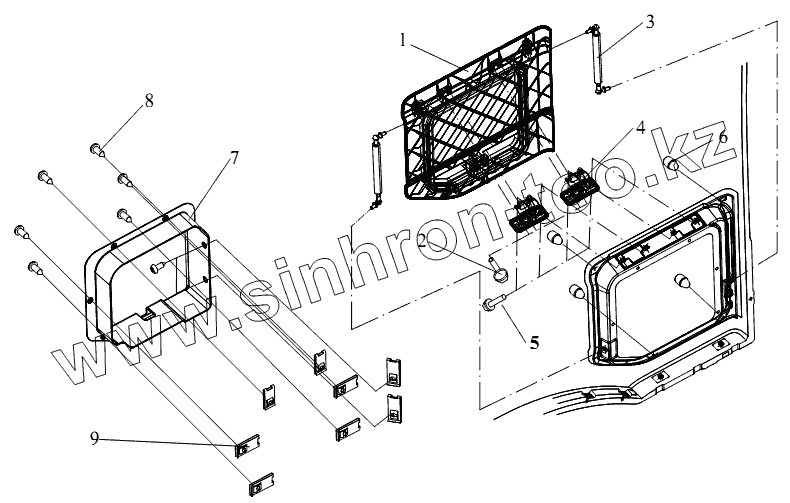 Каталог запасных частей к технике: FAW CA-4250 (P66K2T1A1EX). Инструментальный ящик боковой обшивки