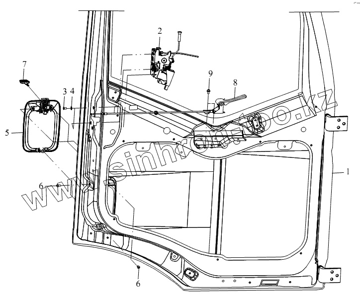 Каталог запасных частей к технике: FAW CA-4250 (P66K2T1A1EX). Механизм электрического замка двери