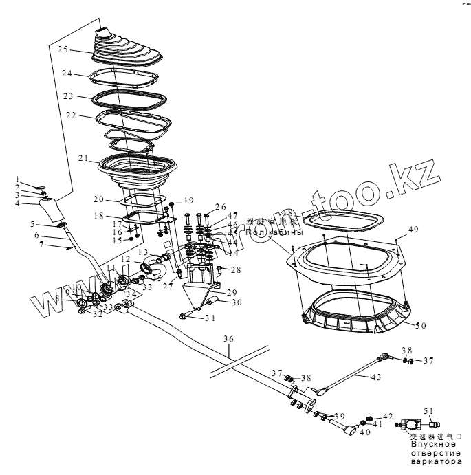 Каталог запасных частей к технике: FAW CA-4250 (P66K2T1A1EX). Механизм управления переключением скоростей