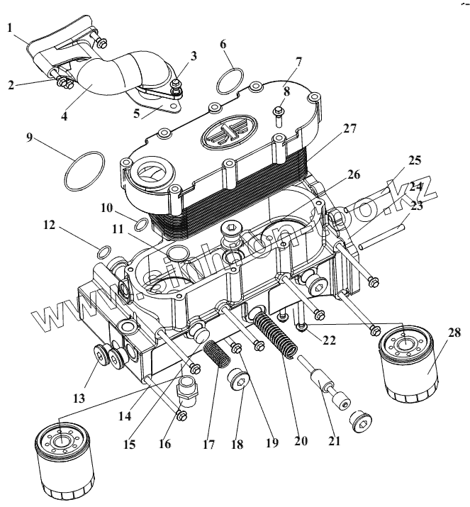 Каталог запасных частей к технике: FAW CA-4250 (P66K2T1A1EX). Охладитель моторного масла