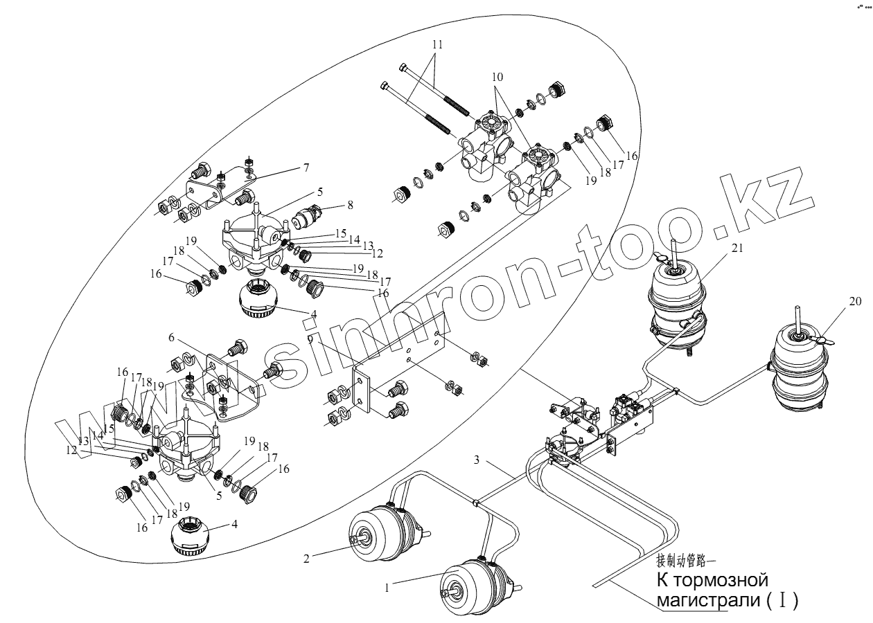 Каталог запасных частей к технике: FAW CA-4250 (P66K2T1A1EX). Тормозная магистраль