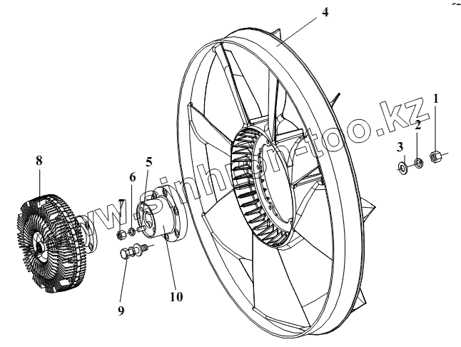 Каталог запасных частей к технике: FAW CA-4250 (P66K2T1A1EX). Вентилятор и муфта вентилятора