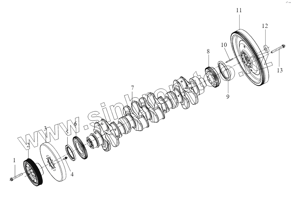 Каталог запасных частей к технике: FAW CA 4250 P66K24T1E. Crankshaft and Flywheel