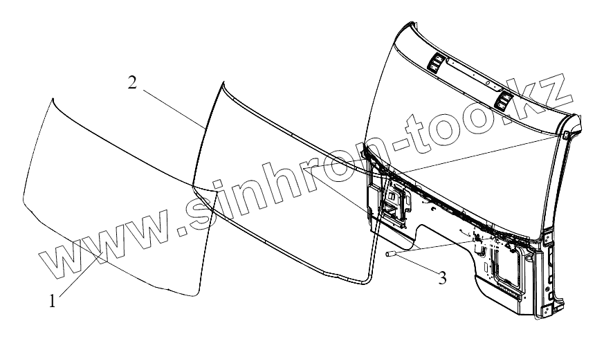 Каталог запасных частей к технике: FAW CA 4250 P66K24T1E. Front Windscreen Glass