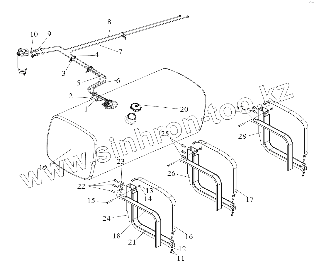 Каталог запасных частей к технике: FAW CA 4250 P66K24T1E. Fuel Tank and Fuel Pipeline
