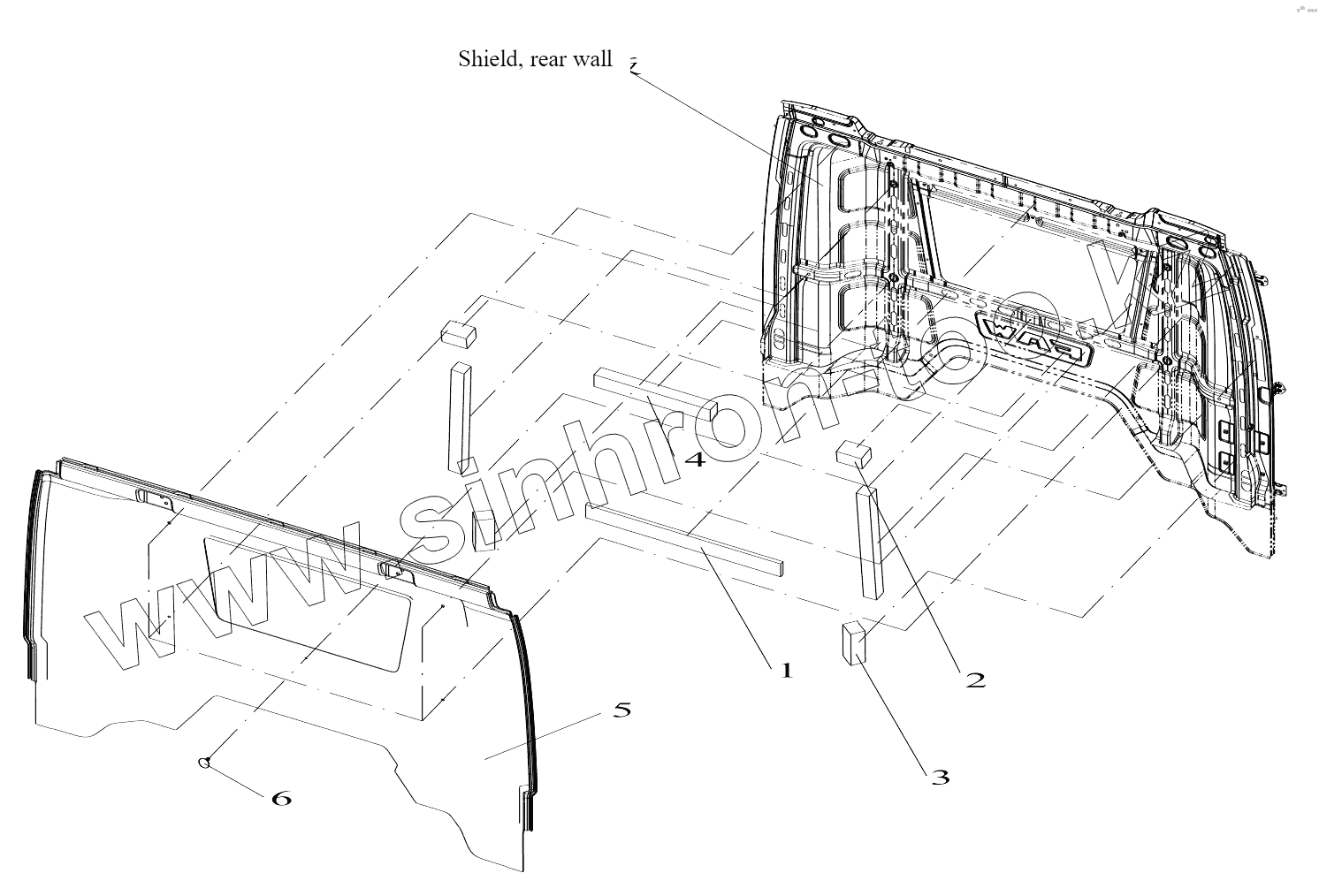 Каталог запасных частей к технике: FAW CA 4250 P66K24T1E. Rear Wall Facing (II)