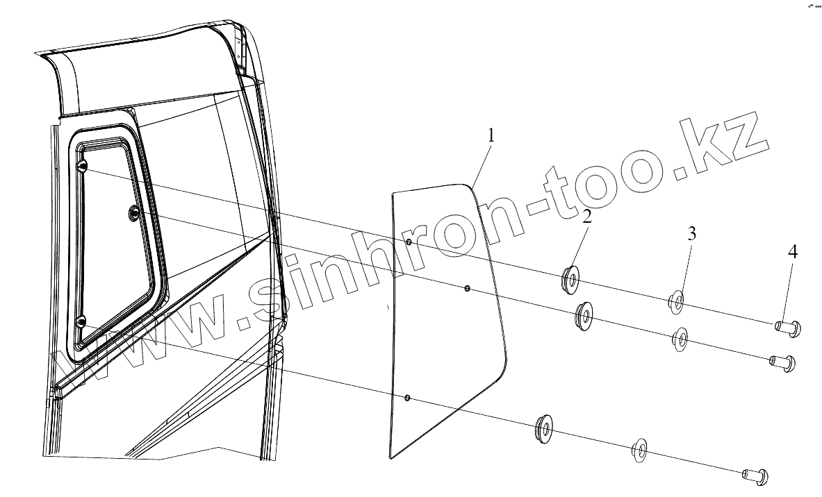 Каталог запасных частей к технике: FAW CA 4250 P66K24T1E. Side Window Glass