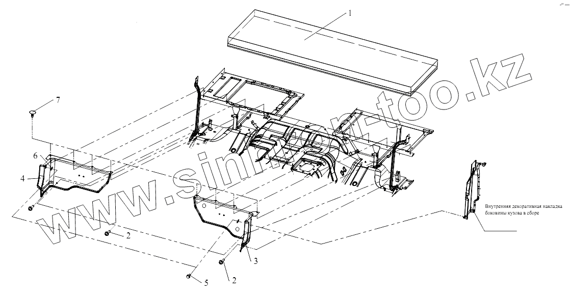 Внутренние декоративные элементы боковины кузова с посадочным поручнем