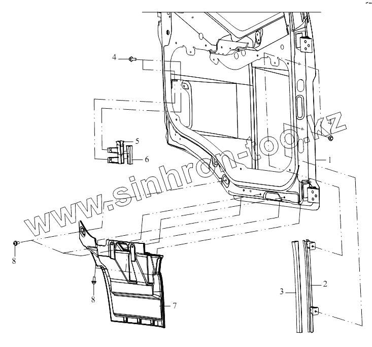 Каталог запасных частей к технике: FAW CA 5250 (GJBP66K2T1E4). Нижняя декоративная накладка двери