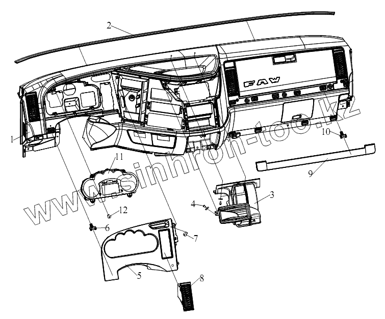 Каталог запасных частей к технике: FAW CA 5250 (GJBP66K2T1E4). Панель приборов (III)