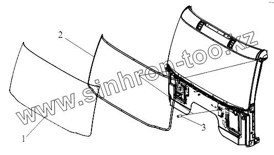 Каталог запасных частей к технике: FAW CA 5250 (GJBP66K2T1E4). Переднее ветровое стекло