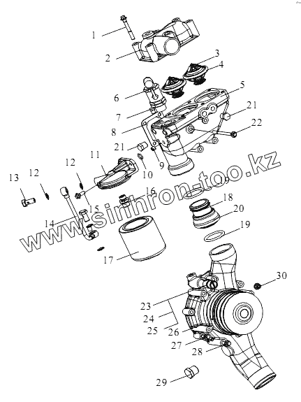Каталог запасных частей к технике: FAW CA 5250 (GJBP66K2T1E4). Термостат, водяной насос